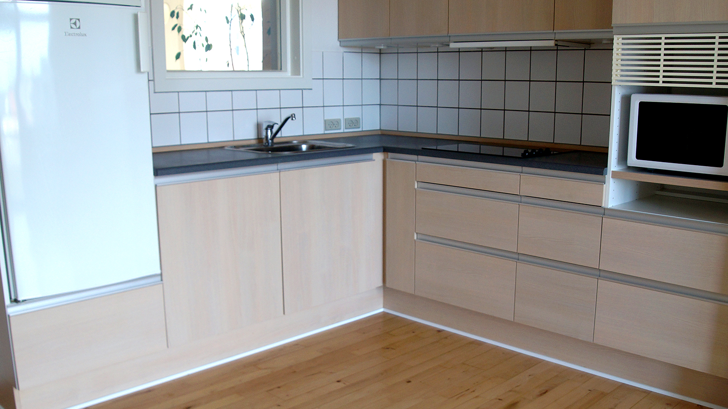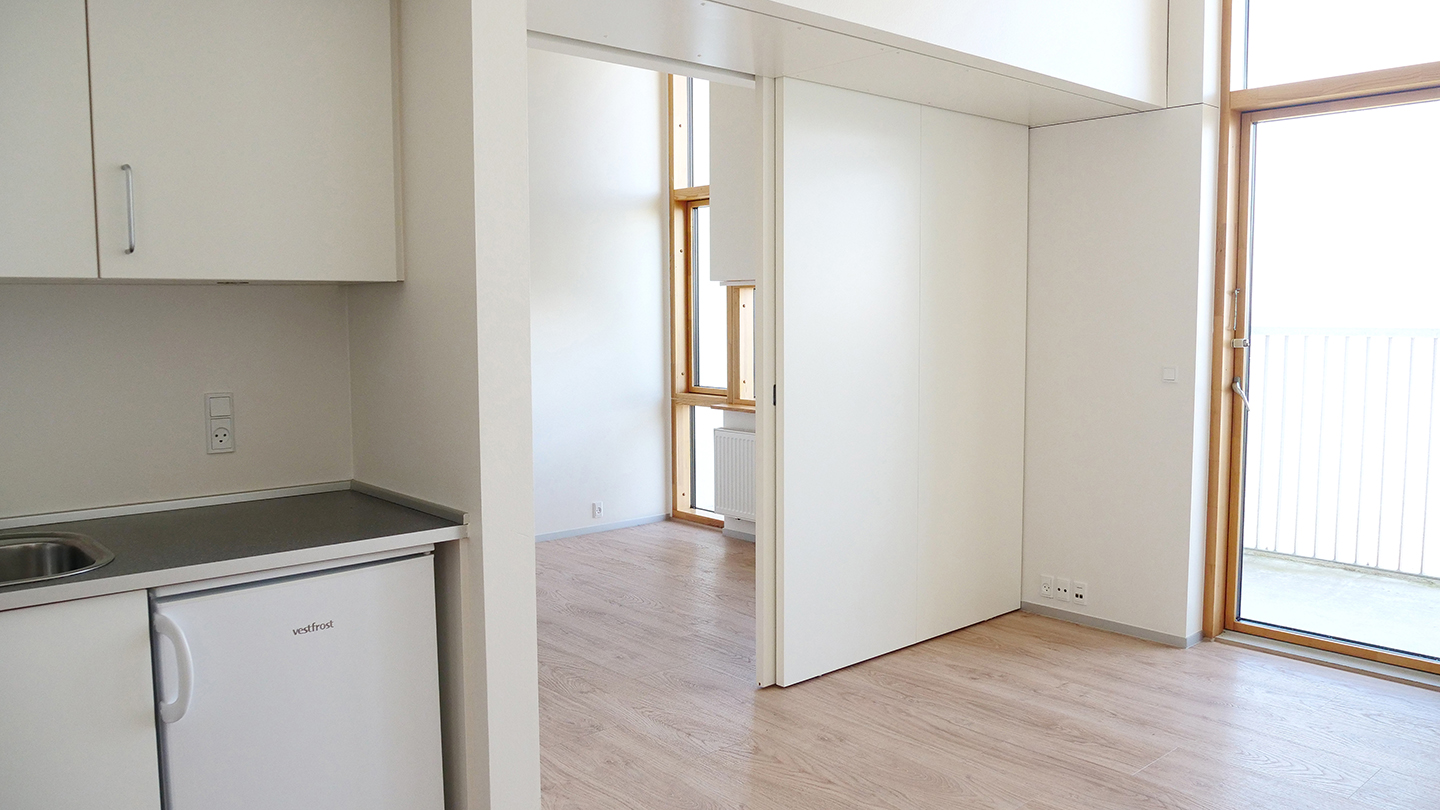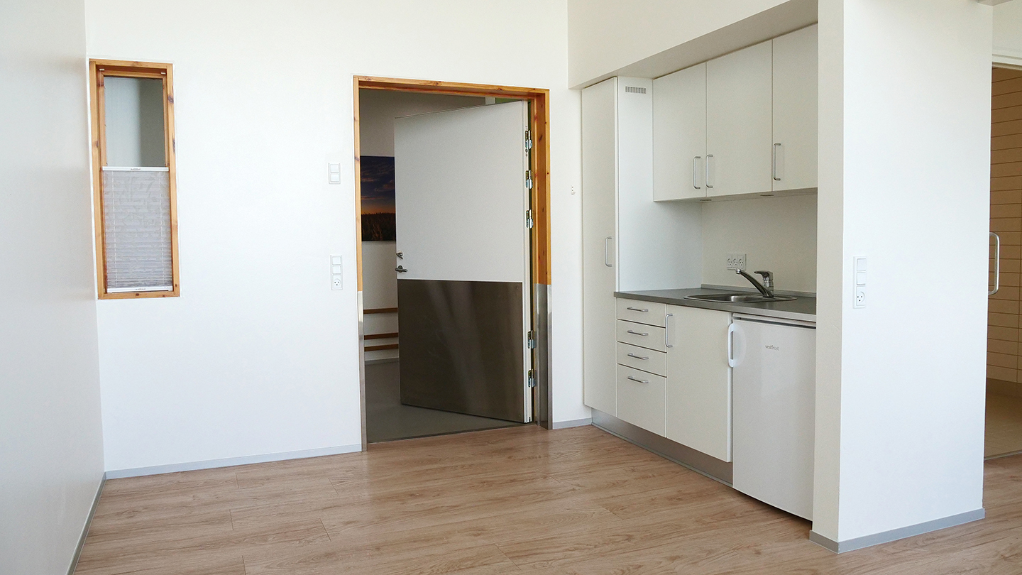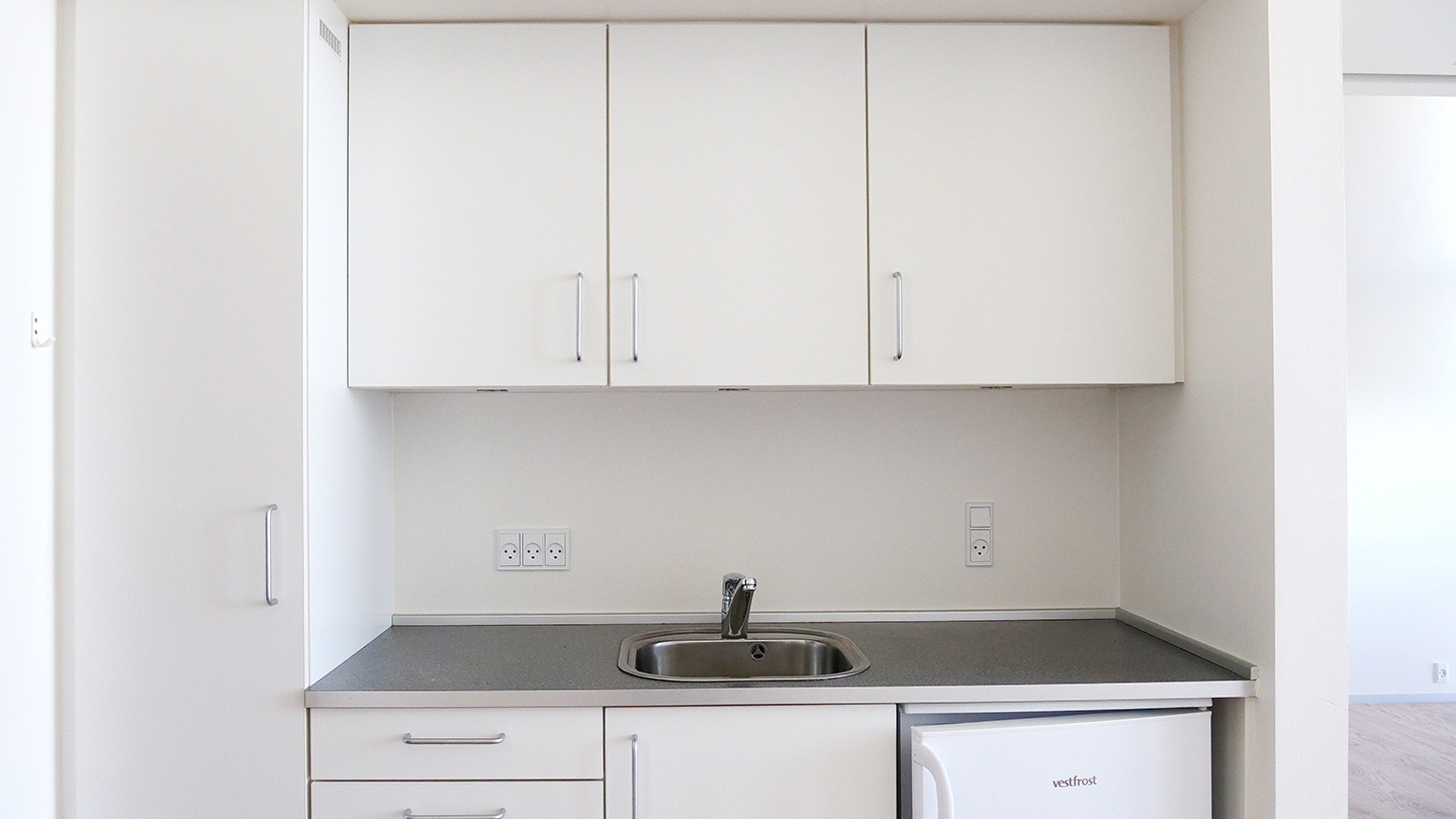 Lejlighed på Kærvang Fjorden Stuen indeholder 2 rum, bad og toilet samt et lille tekøkken.